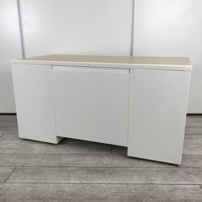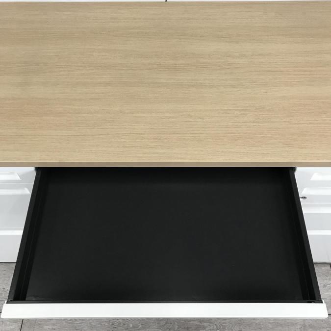 【両袖タイプで収納たっぷり!幅1400㎜でワークスペースもしっかり確保!】■オカムラ(okamura) アドバンス 両袖机 引出付き ■W1400×D700×H720㎜ ■ネオホワイト / 天板ナチュラル ■シリンダー錠- 埼玉本店