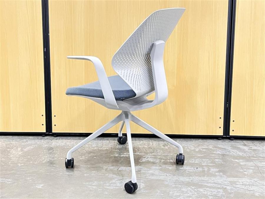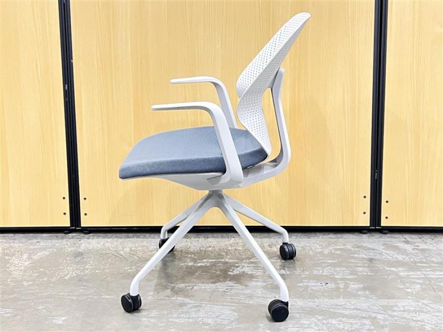 【腰回りをしっかりサポート!】オフィスに新しい風を吹き込むライトタスクチェア! ■イトーキ/キュアチェア(QuA)/背カラー:ライトグレーG 座カラー:ホワイトグレーT ミーティングチェア 固定肘 樹脂メッシュバック 4本脚 【ABW】