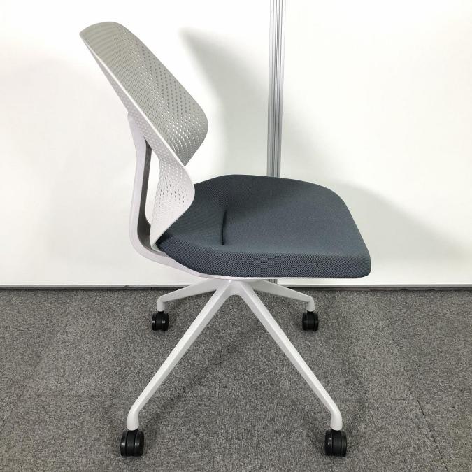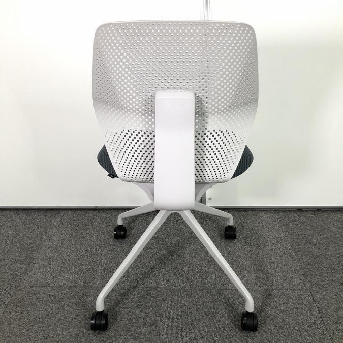 【オフィスに新しい風を吹き込むライトタスクチェア!】【腰回りをしっかりサポート!】■イトーキ製(ITOKI)製 キュアチェア(QuA) 肘無 ミーティングチェア 5本脚 ■背面樹脂メッシュ ■背面:ホワイト/座面:ダークグレー【2509】弊社使用欄【A01032806】