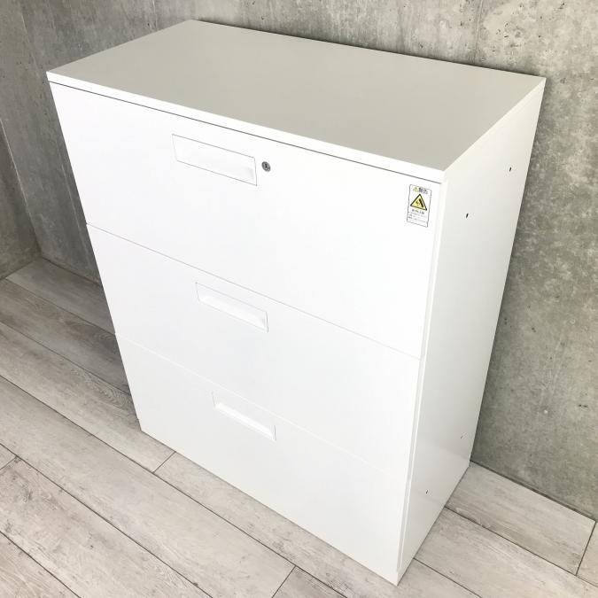 【4台入荷】【収納力抜群の3段ラテラル書庫!A4書類が大量に収納可能!】■コクヨ(KOKUYO)製 エディア(EDIA)シリーズ 3段ラテラル ローキャビネット ■天板/ベース付き ■ホワイト ■シリンダー錠