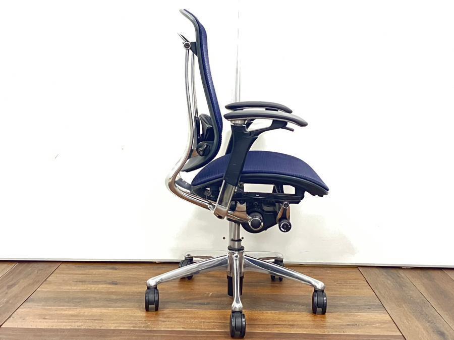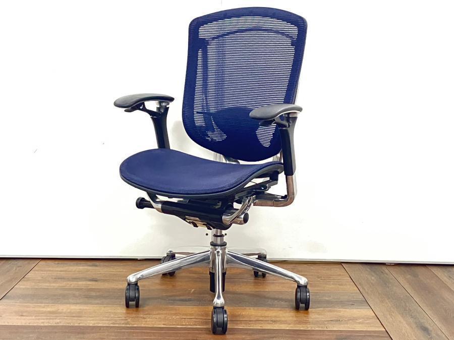 【オカムラ製の最高級チェアが残り1脚限りです!!】オフィスバスターズ 東大阪店 オカムラ製 コンテッサ シリーズ ダークブルー アジャストアーム※可動肘 背/座面メッシュ ランバー 世界で認められた革新的タスクチェア!人間工学に基づいた快適な座り心地を実現! 肘付きハイバックチェア!! 中古 外部倉庫品