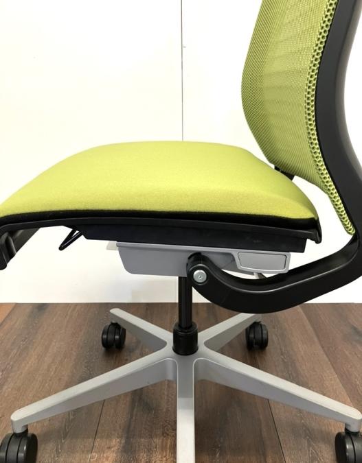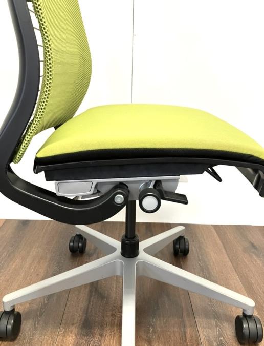 快適な座り心地に不可欠な調節機能である、上下昇降、座面の奥行き調整、リクライニングなどを備えており、操作もわかりやすく好評です。 特に、座面の奥行きは、座面下の左右に通った細いバーで調整でき、座ったままで軽やかに滑るように調整が可能です。 価格面では、新品では高めですが、中古は流通も多く、定価の3割前後の価格で高級チェアの座り心地を手に入れることができます!