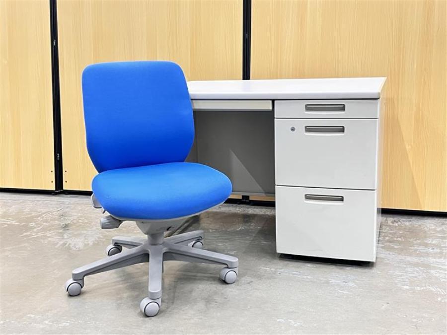 デスク+チェアのセット!【スタンダードなデザインで高品質・コンパクトなサイズ感!】■コクヨ(KOKUYO)製/BSシリーズ/片袖デスク/W1000×D700mm/ナチュラルグレー /コクヨ(KOKUYO)製/セディスタチェア/肘無ローバック/モデレートブルー/オススメ(おすすめ) /人気商品【弊社使用欄:A00984575/A00982217 】在庫がある店舗一覧