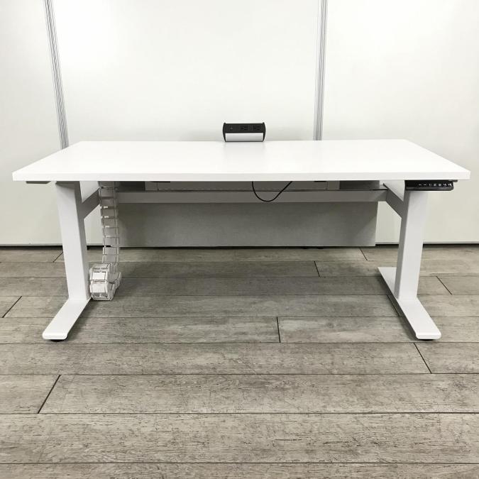 【幅広サイズで作業効率改善!電動昇降デスク!】■ヘイワース (HAWORTH) 電動昇降デスク 平机 ※電源タップ付き ■W1400mm ■ホワイト- つくば店