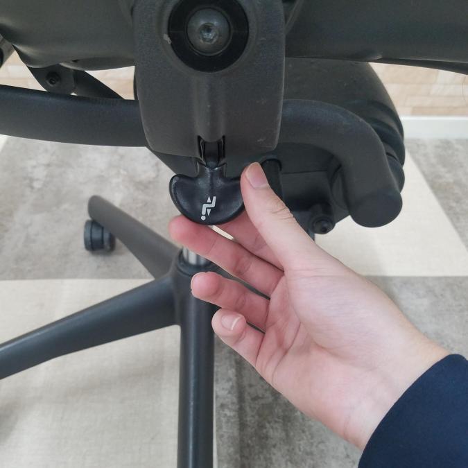- 背もたれの裏にあるランバーサポート(パッド) の厚さは裏表で調節。上下の移動で、適切な高さ に調節できます。