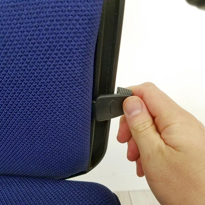 しかも、背もたれ両側のレバーを上下に動かすことによって、ランバーサポートの支点を上下に60mm動かすことができるので、体格に合わせて調整できます。