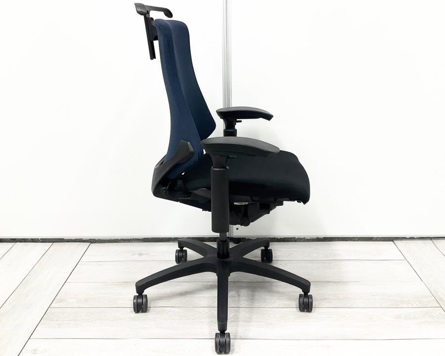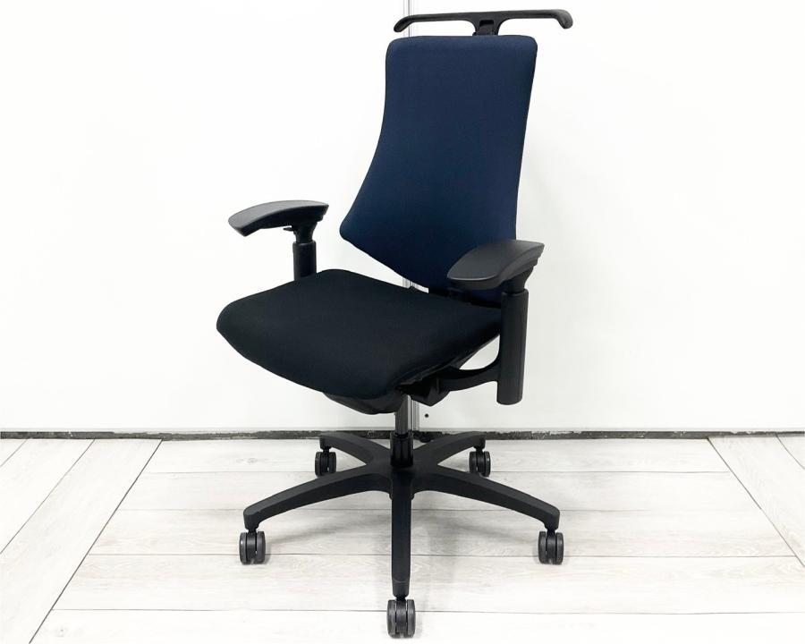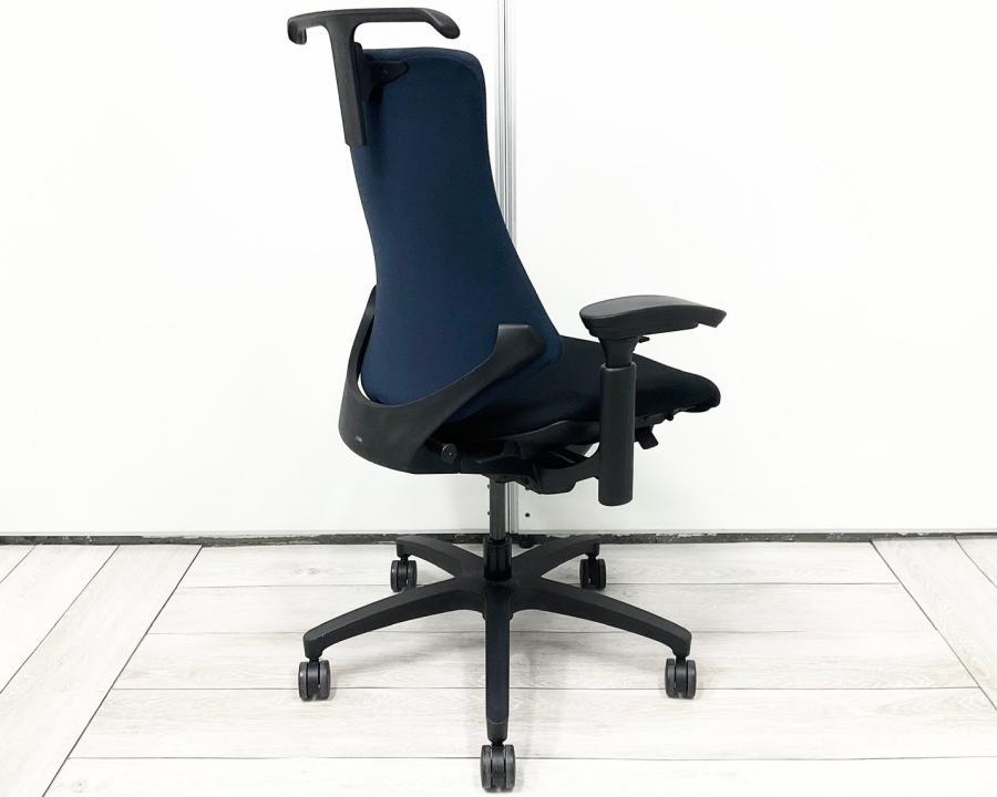 【包み込まれるフィット感!】 ■イトーキ製 エフチェア 肘付 ネイビーブルー ■デスクワークの疲労を軽減!