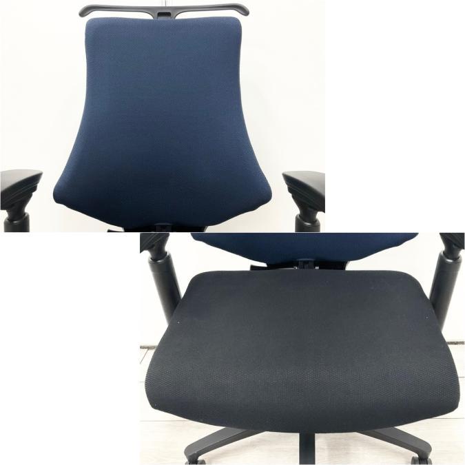 【6脚限定】■姿勢の変化に寄り添う、体にフィットする快適な座り心地!■イトーキ(ITOKI)製 エフ(f)チェア クロスバックタイプ アジャスタブル(可動)肘 ■色:ネイビーブルー×ブラック オフィスバスターズ 梅田本店
