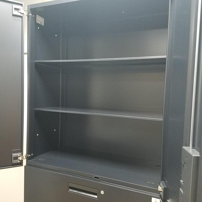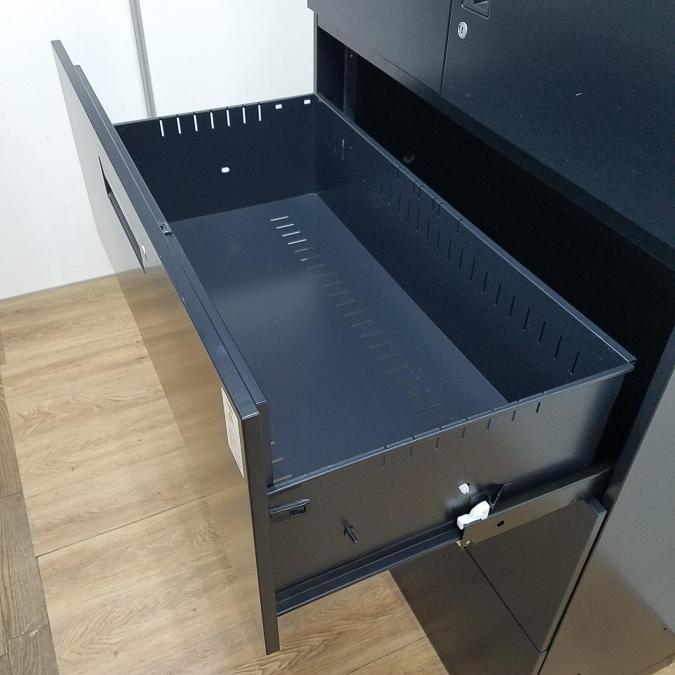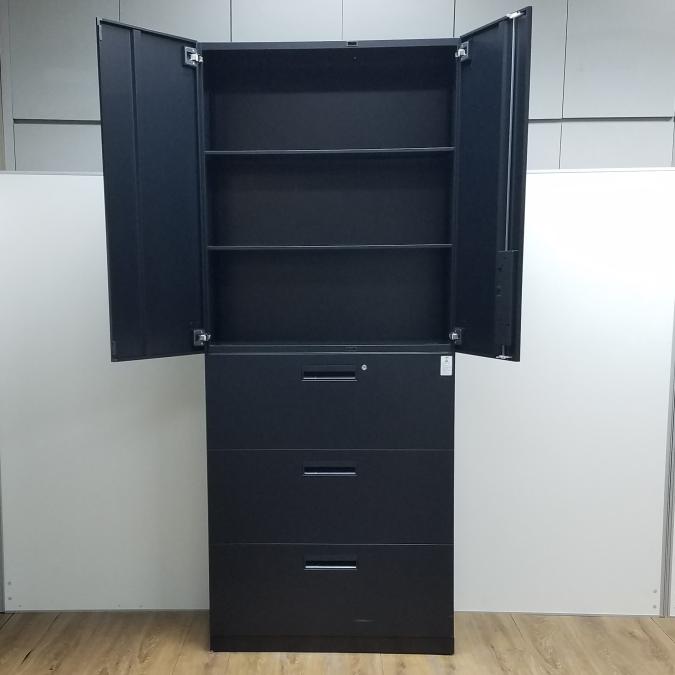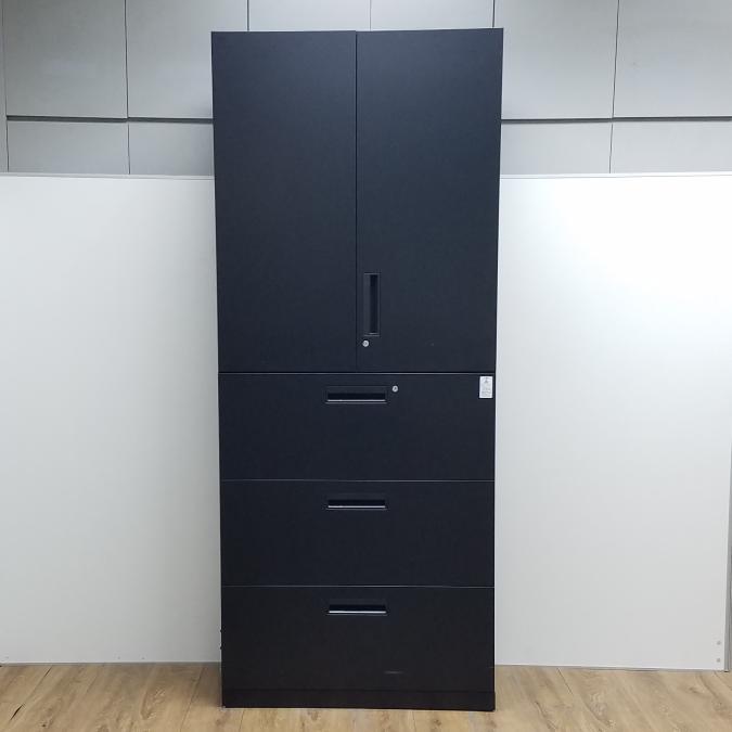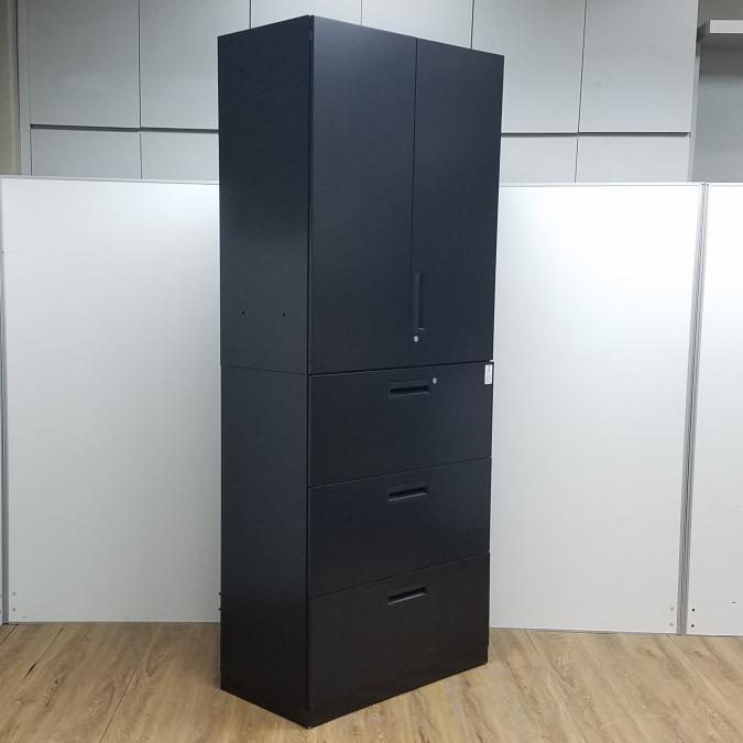 【商品入替のため、残り1台限り】コクヨ製 エディアシリーズ ブラック シリンダー 珍しいブラックカラーのセット書庫!スタイリッシュな見た目で豊富な収納! 両開き+3段ラテラル 上下書庫セット!!【管理番号:A00984766/A00984767】- 京都東寺店