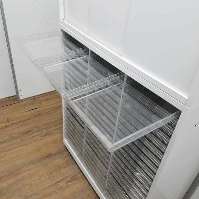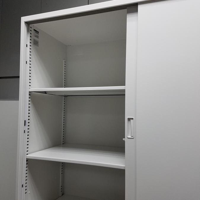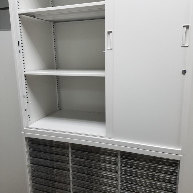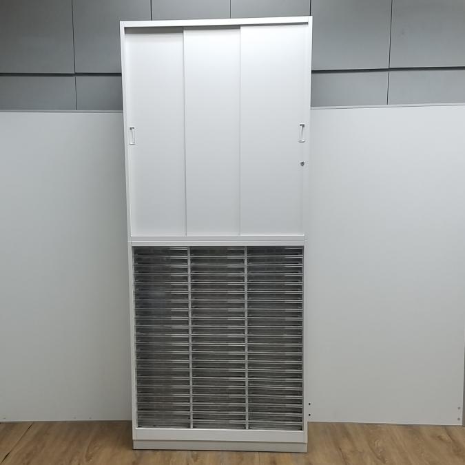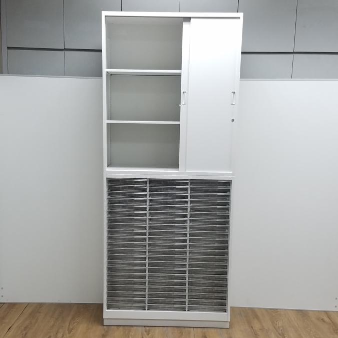 【レア】イトーキ製 シンラインシリーズ ホワイト 希少なクリスタルトレイの書庫セット! 浅型タイプ 引き違い+クリスタルトレー 書庫セット!!- 京都東寺店