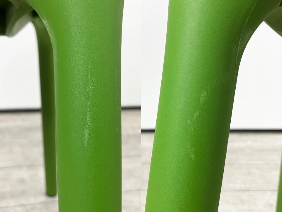 - 目立つ箇所あり傷・破れ・ほつれ・へたり・しわが多数または深い傷・破れ・ほつれ・へたり・しわが一部ある。※座面・背もたれ、シェル、脚部等にある。