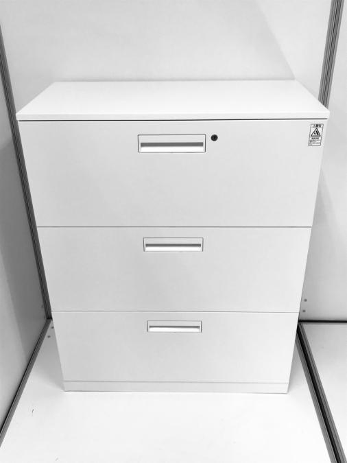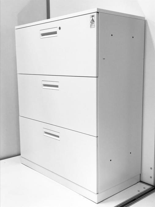 【2020年製】【収納力抜群の3段ラテラル書庫!A4書類が大量に収納可能!】■コクヨ(KOKUYO)製 エディア(EDIA)シリーズ 3段ラテラル ローキャビネット H1130㎜ ■天板・ベース付き ■ホワイト ■シリンダー錠【2511】弊社使用欄【A01044970】
