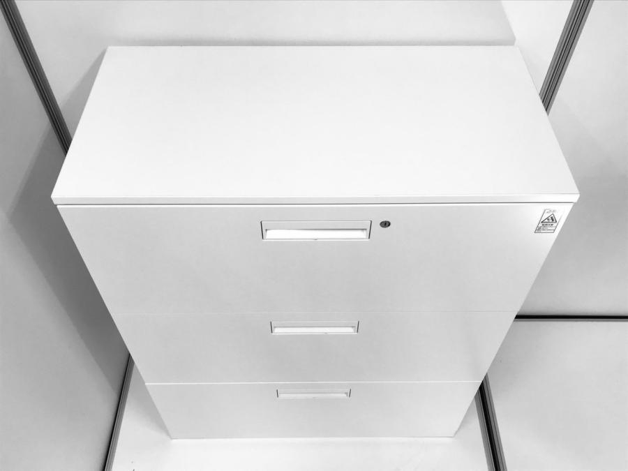 【4台入荷】【収納力抜群の3段ラテラル書庫!A4書類が大量に収納可能!】■コクヨ(KOKUYO)製 エディア(EDIA)シリーズ 3段ラテラル ローキャビネット ■天板/ベース付き ■ホワイト ■シリンダー錠
