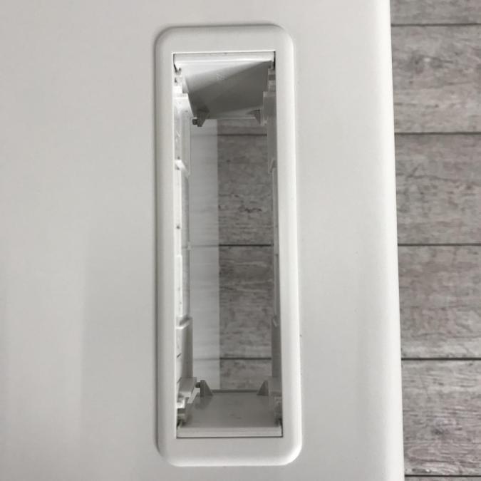 フロント部幕板上部から天板の配線穴を等して通線ができるOA対応デスクです。