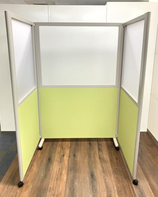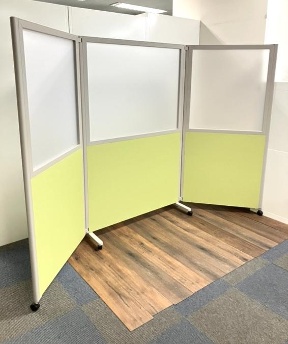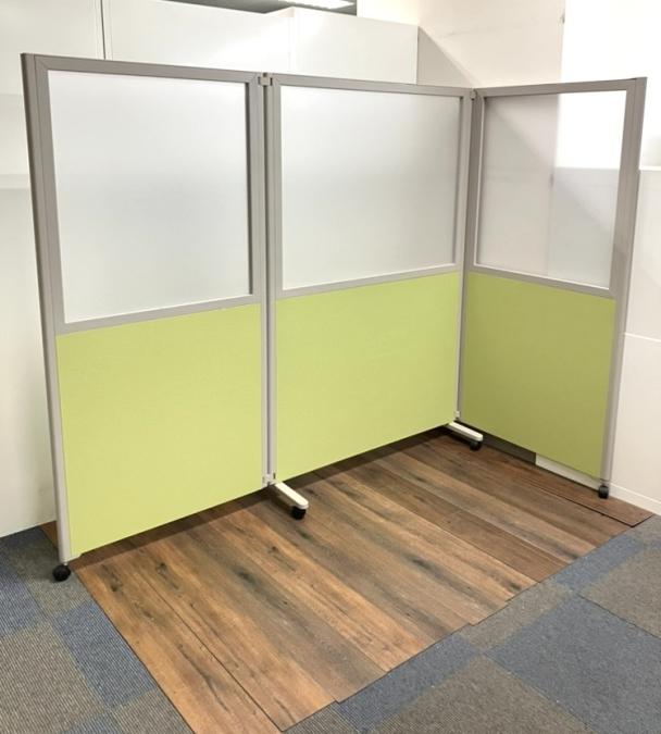 希少/間仕切り/レア コクヨ(KOKUYO) エス(S) 3連パーテーション(W900+W1230+W900) グリーン 上面樹脂ガラスパネル ※千葉店撮影商品- 千葉店