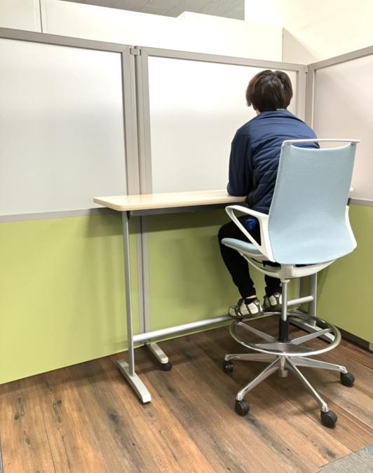 さらに、ハイテーブル×ハイチェアで休憩スペースを演出する等、