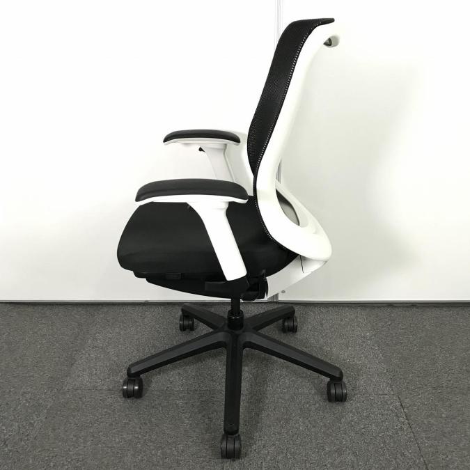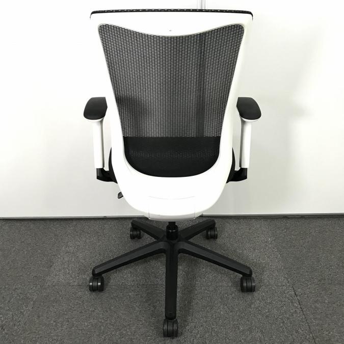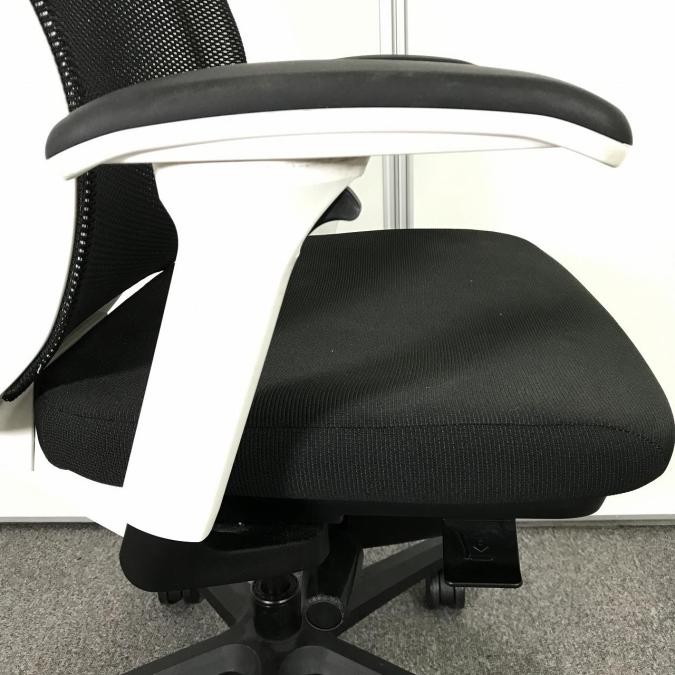 【背中をしっかり支え、包み込まれる快適なフィット感!】■ライオン(LION) レイオスチェア(Leios) 肘付 ハイバック ■可動肘 ■背面メッシュ ■ブラック/ホワイトシェル- 品川・三田店