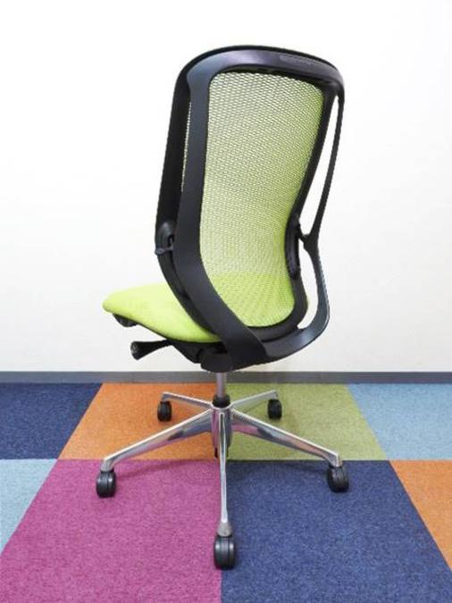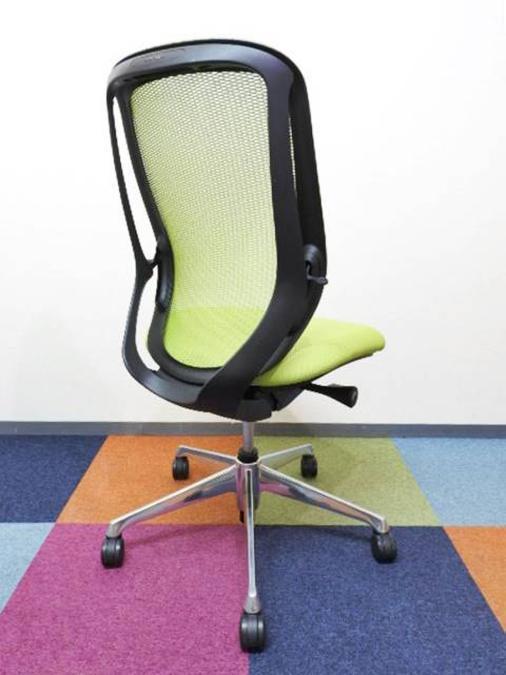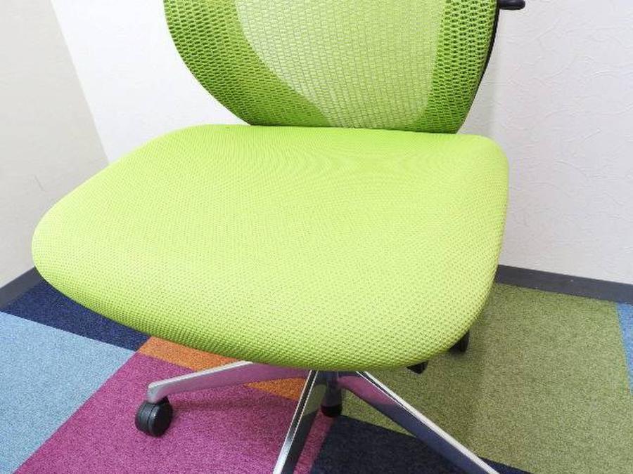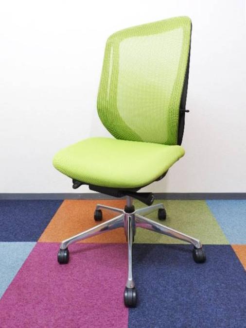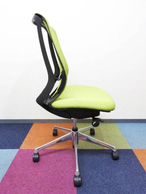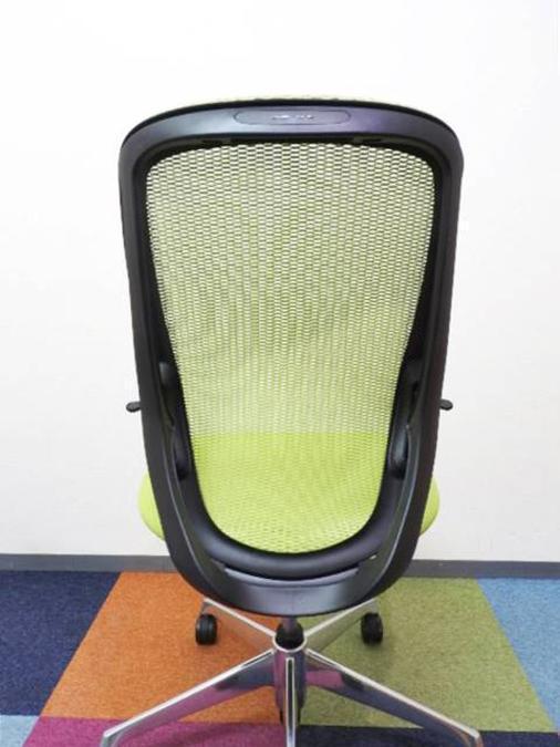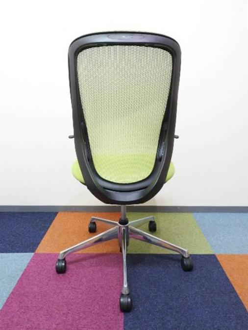 オカムラ製 シルフィ ライムグリーン ブラックフレーム 背面メッシュ ハイバック 樹脂脚 前傾チルト機能付き! オカムラ製品で最も人気を集める高機能メッシュチェア! 肘無しハイバックチェア!!