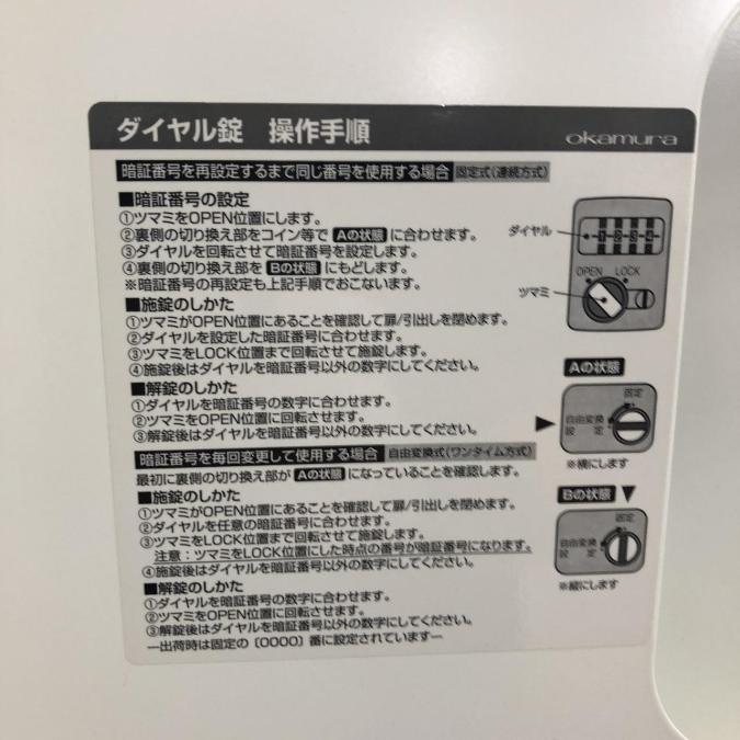 ※暗証番号が分からなくなった時の開錠用マスターキーは付属されておりません(新品でもオプションとなります)