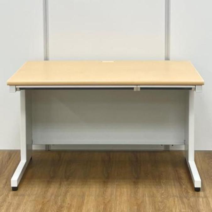 【ベーシックな使いやすさ・ローコストの引き出し付きデスク!】■プラス (PLUS) 製 フラットラインシリーズ 平デスク W1200mm 引き出し付(日焼け有) ■本体:ホワイト 天板:木目ナチュラル(メープル調) 【弊社使用欄:A01040783/A01035962】