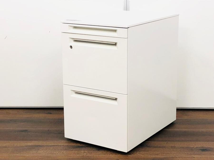 【セットでお買い得!横幅1400の平机と3段ワゴン!疑似片袖机】 オカムラ アドバンス ホワイト 引き出し付き ネオホワイト【収納が欲しいかたにはオススメ】