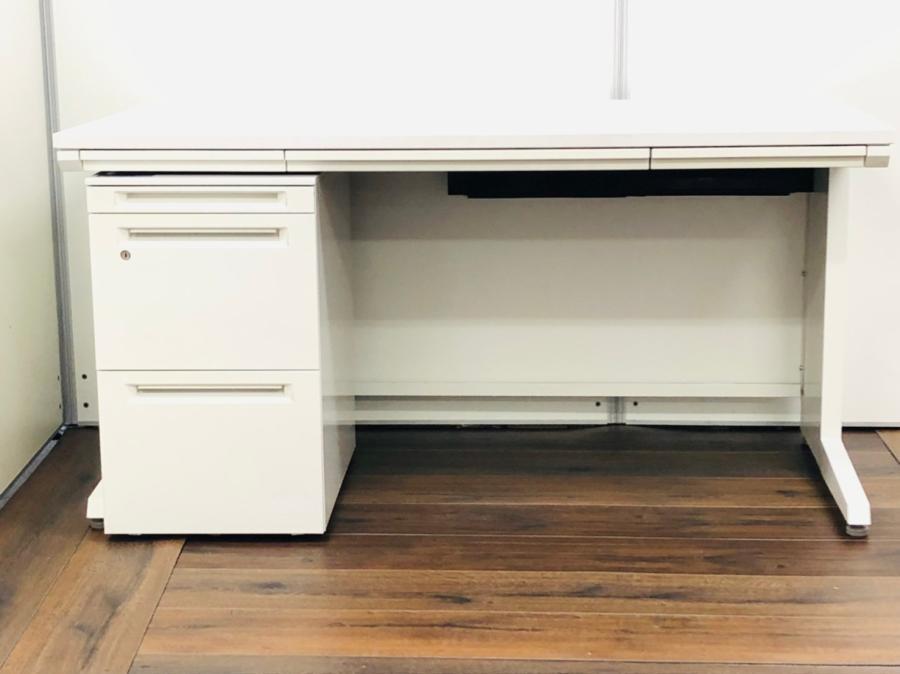 【セットでお買い得!横幅1400の平机と3段ワゴン!疑似片袖机】 オカムラ アドバンス ホワイト 引き出し付き ネオホワイト【収納が欲しいかたにはオススメ】