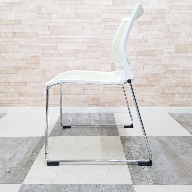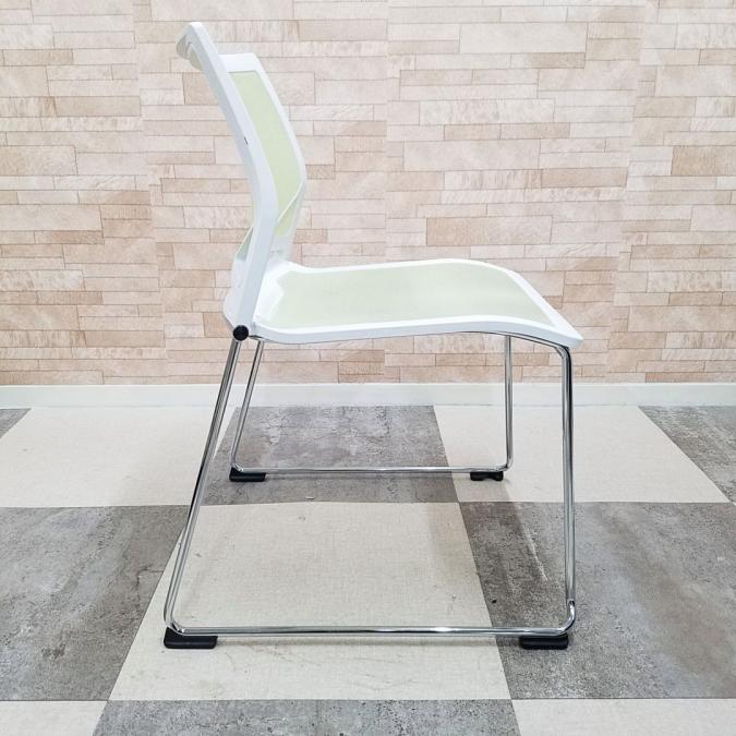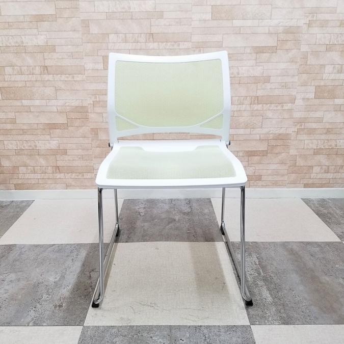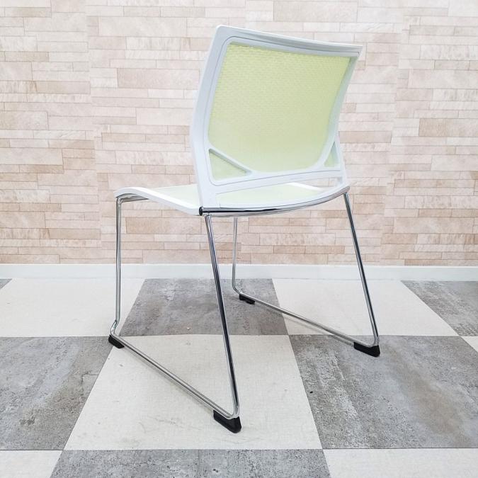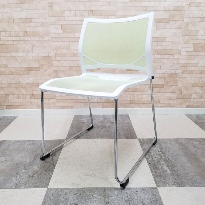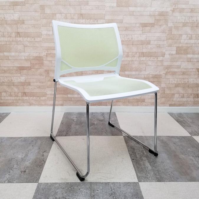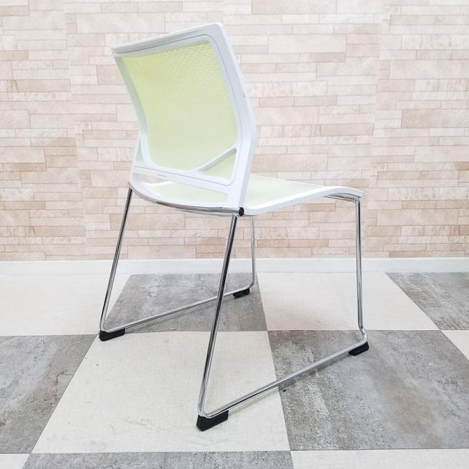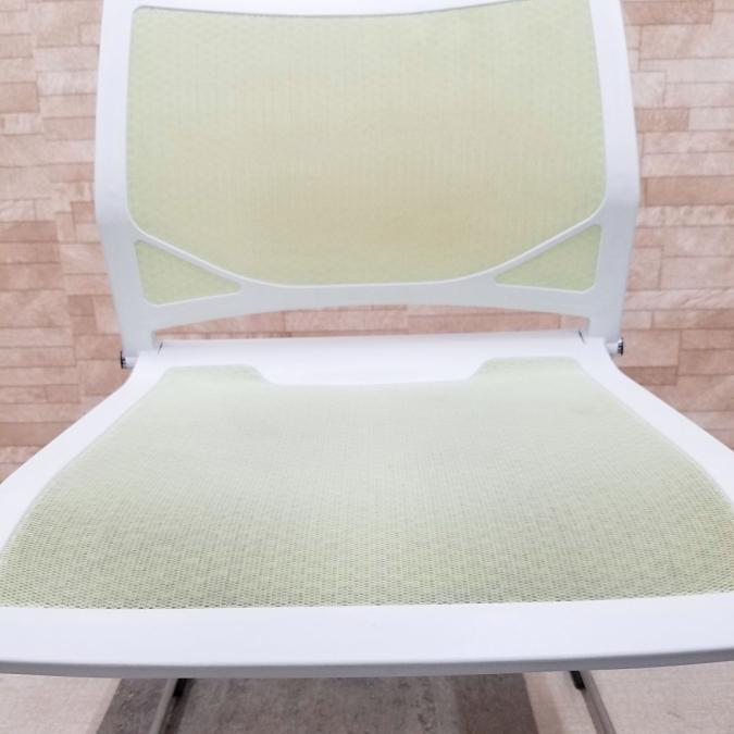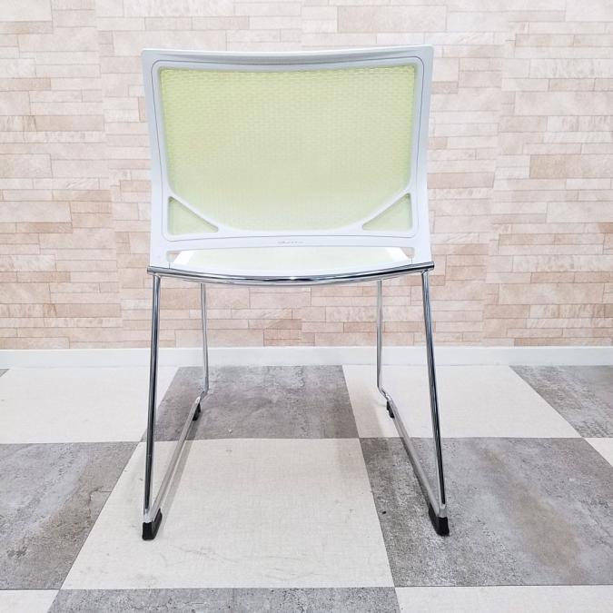 【在庫入替セール品】【重ねて省スペースに格納できます!】■オカムラ Zart(ツァルト)シリーズ スタッキングチェア ■肘無し ピスタチオグリーン/ホワイトシェル 背座面メッシュ- 大阪・堺店