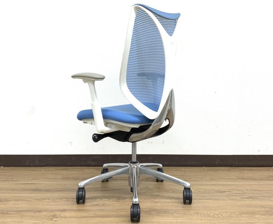 【在庫セール品】【定価約16万円】【前傾チルト付!流れるような美しいフォルムの最高級メッシュチェア!】■オカムラ(okamura)製 Sabrina(サブリナ) ハイバック 肘付き ■可動肘 ■背面メッシュ:アクアブルー/座面:ブルー×ホワイトフレーム【AD】