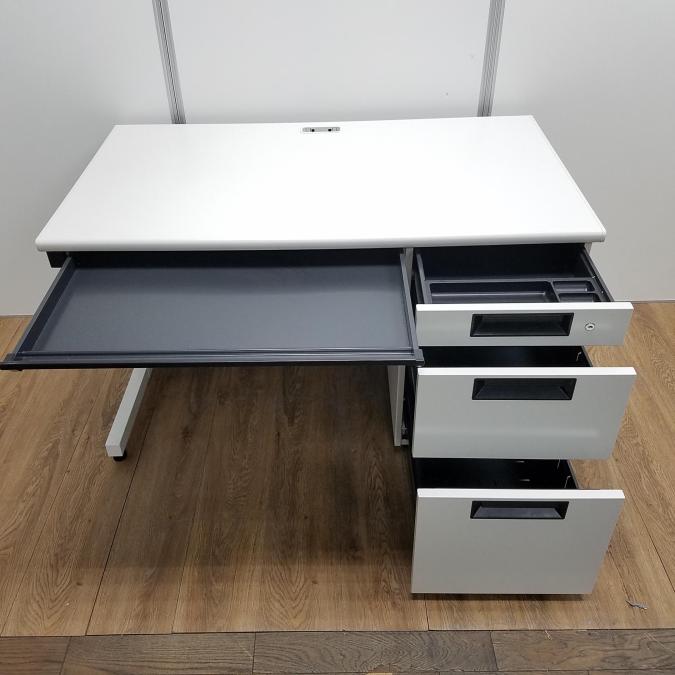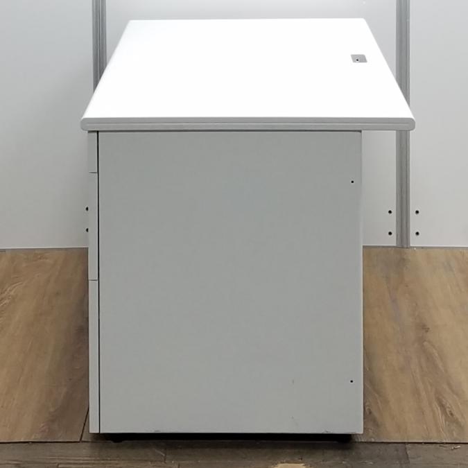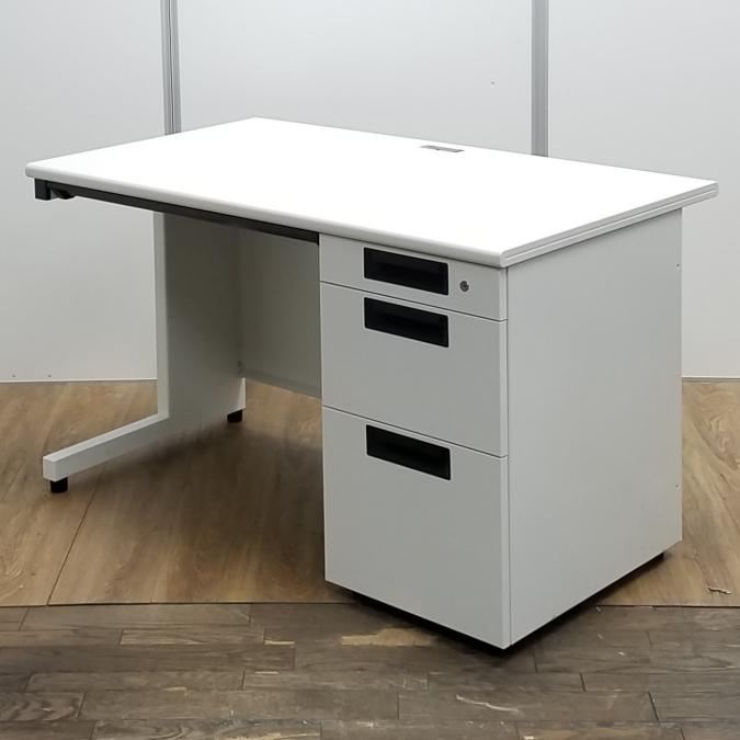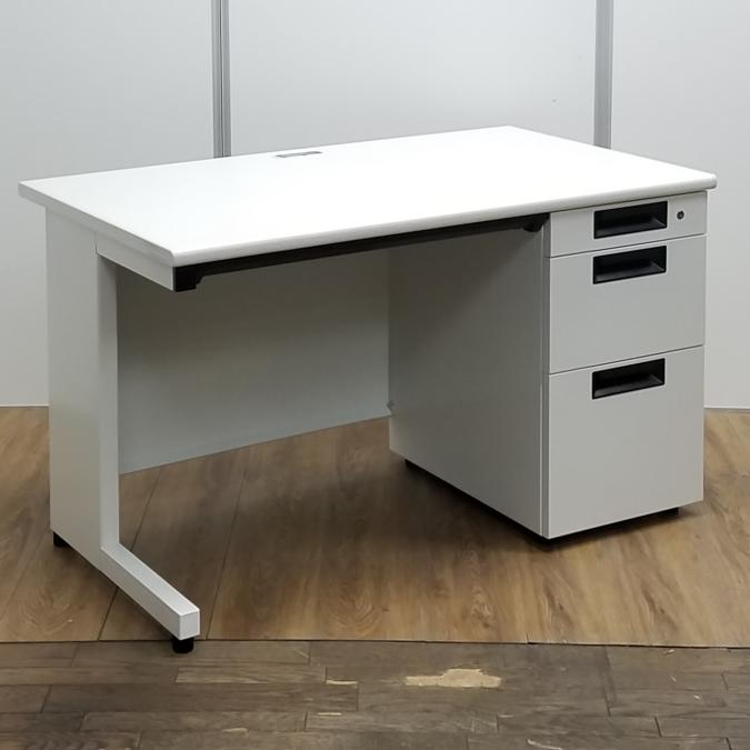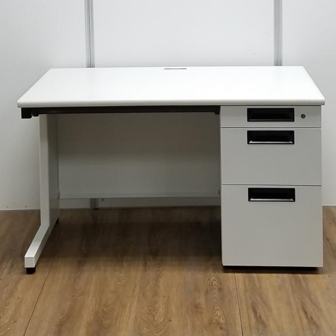 【配線ダクト欠け】プラス製 フラットラインシリーズ ホワイト 引き出し付き W1200サイズ 定番サイズのW1200サイズ オーソドックスな片袖デスクが入荷! W1200片袖机!!- 京都東寺店