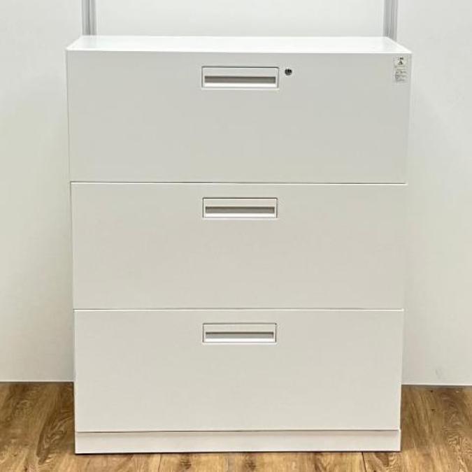 コクヨ製 エディアシリーズ ホワイト ローキャビネット シリンダー オフィスの書類をスッキリ整理!スリムでシャープなデザインの書庫! 3段ラテラル書庫!!- 京都東寺店