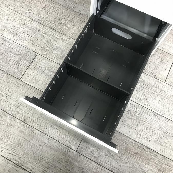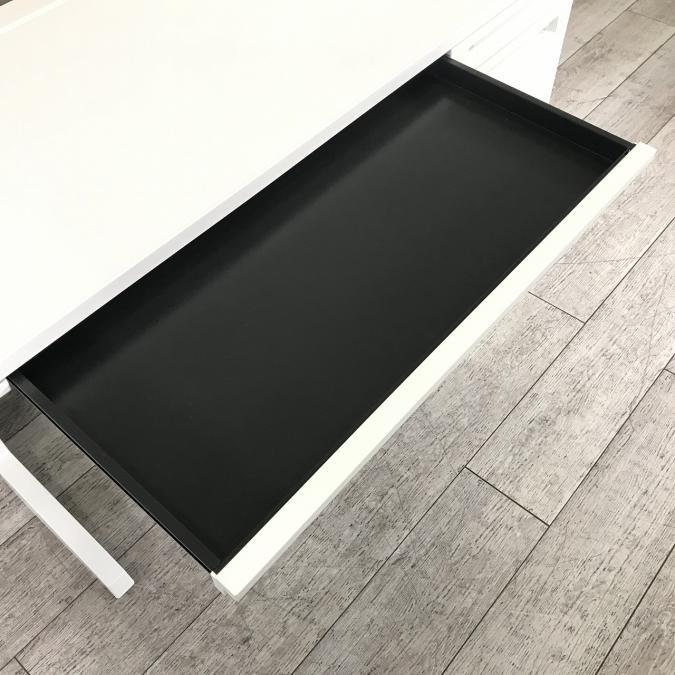 中段は書類やファイル等、下段はA4サイズ対応の引出で資料などの保管に便利です。