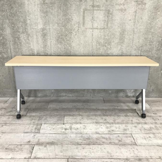 【W1500の折り畳みテーブルが入荷!】◆オカムラ/フラプター ナチュラル 木目 サイドスタックテーブル 収納 中古 博多 天神 九州最大級 オフィスバスターズ