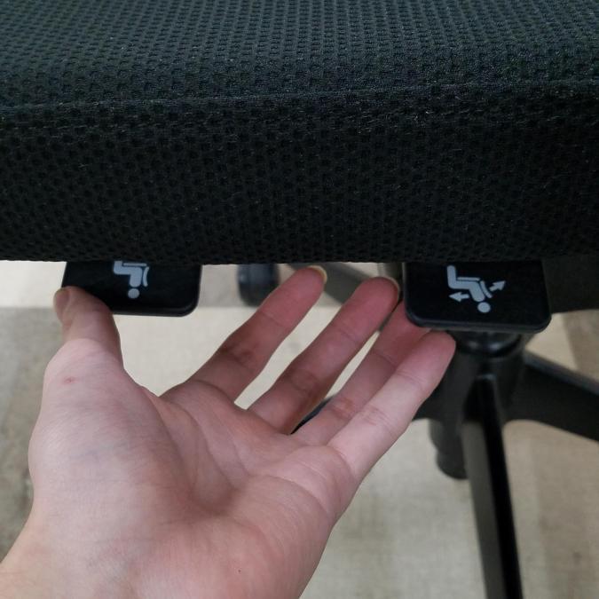 座面のスライド調整の操作を、すべて座面の裏側に集約。