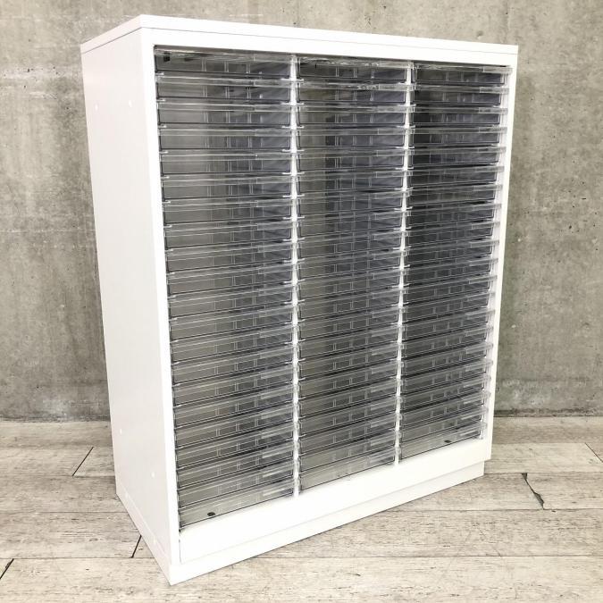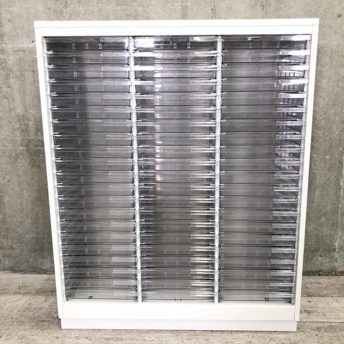 【書類・備品整理の必需品!】【珍しいクリトレが入荷!3列×浅型11段+深型5段】■イトーキ(ITOKI)製 シンラインシリーズ クリスタルトレー ローキャビネット ■3列×浅型11段+深型5段 ■天板・ベース付 ■色:ホワイト