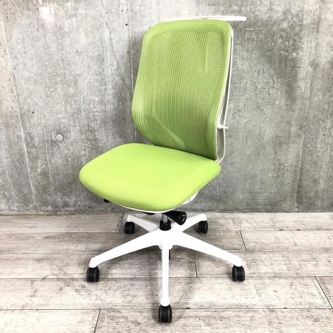 【包み込まれるような快適な座り心地!いま人気のワーキングチェア!】■オカムラ製 シルフィーチェア 肘無ハイバック ■ライムグリーン ■ハンガー付 ■メッシュ- 足立・葛飾店