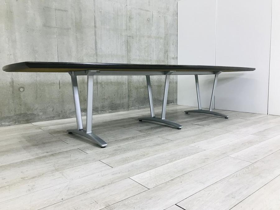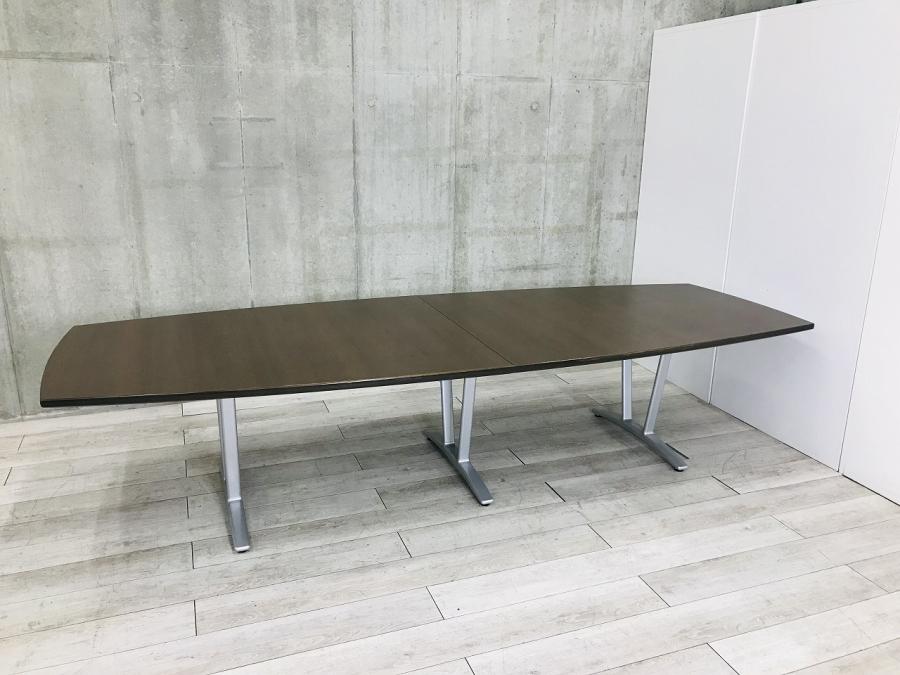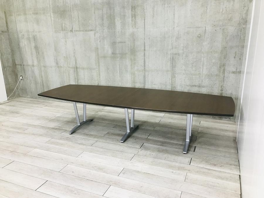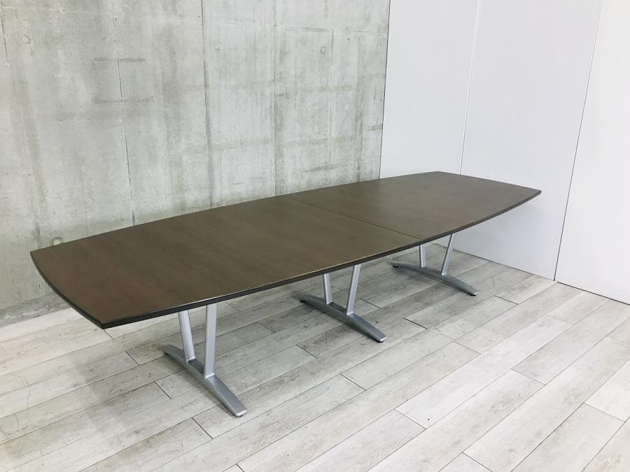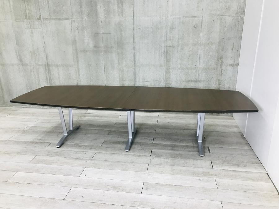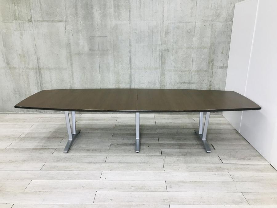 【上質な空間を演出!幅3200mmの大型テーブル!】■コクヨ製 角テーブル W3200×D1200mm 舟形天板2枚 ■木目ブラウン天板 ※大型商品となるため搬入経路にご注意くださいませ。- 足立・葛飾店