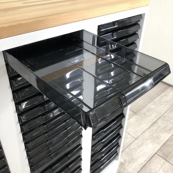 書類や文房具、部材などを細かく分けて収納できる優れものです。
