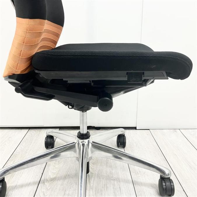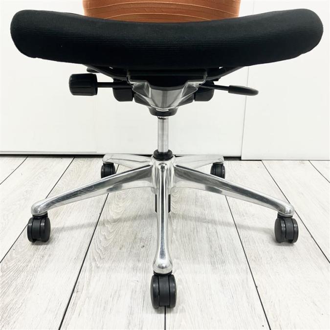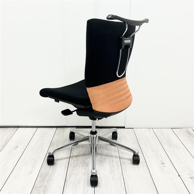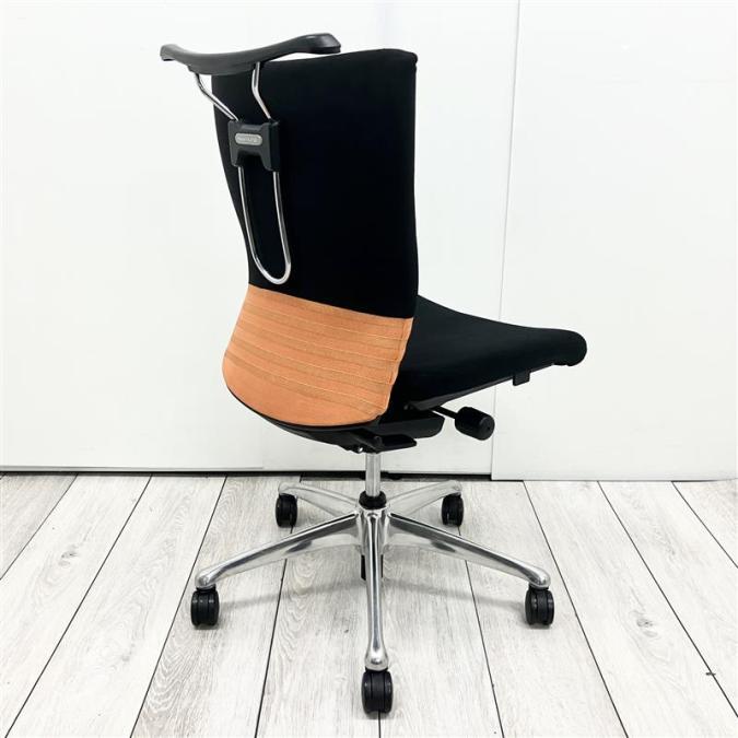 【人間工学に基づいた快適な座り心地!背あてのしなやかな曲線が背中にフィット!】■オカムラ製 フィーゴチェア (feego) 肘無ミドルバック シームレスタイプ ■肘無 ■ブラック×オレンジ ※コートハンガー外し跡のある商品となります。【入替セールにつき30%OFF!】