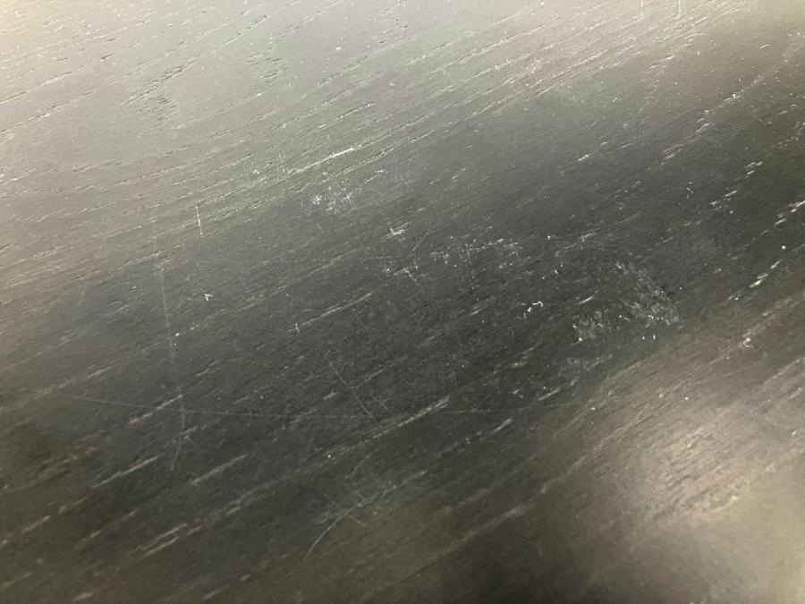 - 目立つ箇所あり傷・凹みが多数、深い傷・凹みが一部ある。(例、天板、幕板、棚板、サイド部分、脚部等にある。)