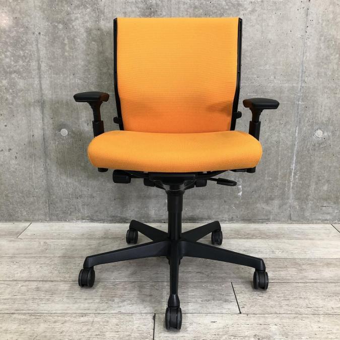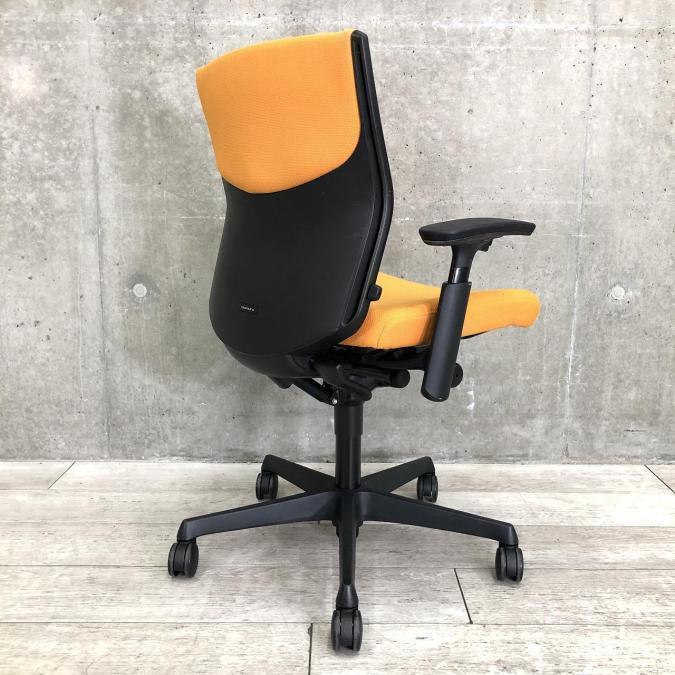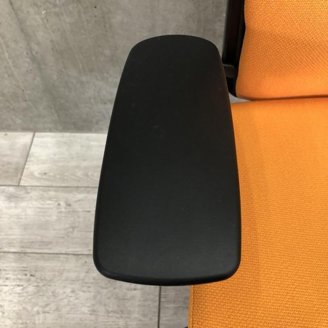 【長時間のデスクワークもランバーが快適にサポート!】■okamura(オカムラ)製 エスクードチェア ローバック肘付き ■可動肘 ■色:アプリコット (オレンジ)サーキュラーバリューCO2削減量の算出について