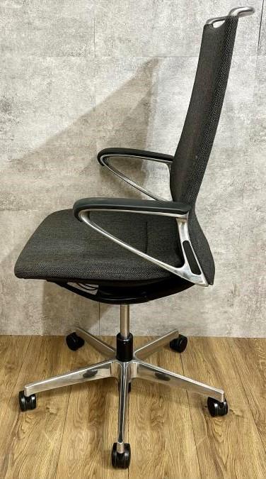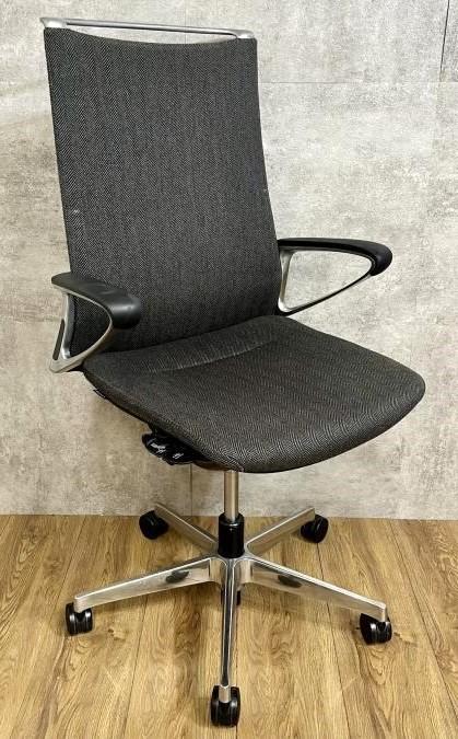 【在庫入替セール品!】スタイリッシュなデザインと確かな座り心地!会議室やモダンなオフィスの執務用としてもおすすめ! インテリア性の高い人気チェア! オカムラ/モード(mode)/ダークグレー デザインアーム フレーム(樹脂) ボディカラー(ブラック) クロス(ヘリンボーン)