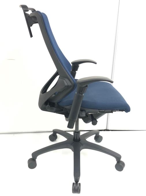 【姿勢の変化にフレキシブルに対応!スタイリッシュで座り心地も抜群な高機能チェア!】■イトーキ(ITOKI)製 エフ(f)チェア 肘付き ハイバック 背面メッシュ ■可動肘 ■ネイビーブルー ×ブラックシェル