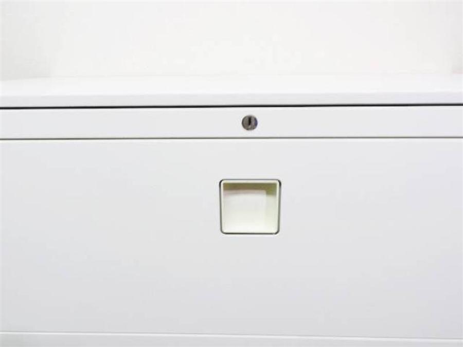 オカムラ レクトライン 3段ラテラル書庫 ホワイト天板 シリンダー錠 鍵付き ※取っ手部分に若干日焼けあり