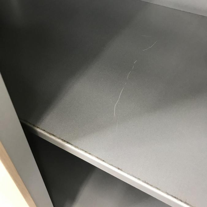 - 目立つ箇所あり傷・凹みが多数、深い傷・凹みが一部ある。(例、天板、正面、背部、サイド部分にある。)