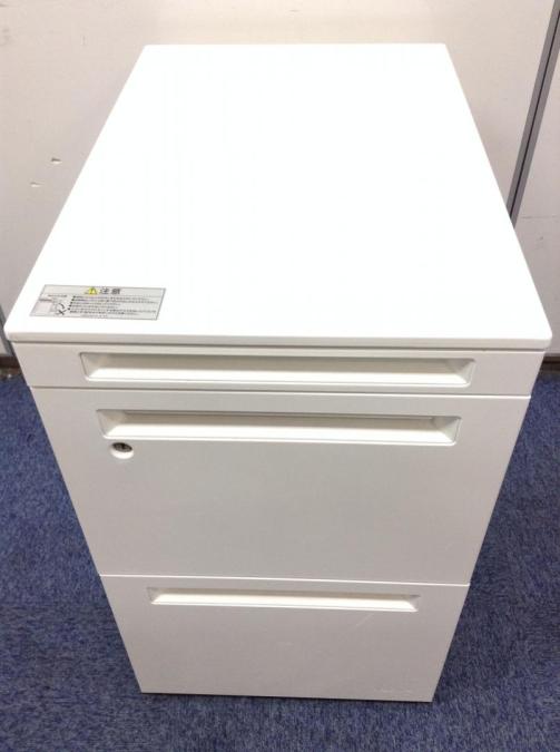 ★【取っ手日焼け】オカムラ製 アドバンス ホワイト フリアド用 W390xD575xH650サイズ シリンダー フリアドデスクや平机の収納力アップに最適! 3段ワゴン!!