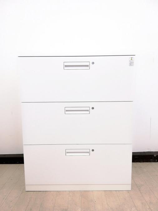 【2020年製】【収納力抜群の3段ラテラル書庫!A4書類が大量に収納可能!】■コクヨ(KOKUYO)製 エディア(EDIA)シリーズ 3段ラテラル ローキャビネット H1130㎜ ■天板・ベース付き ■ホワイト ■シリンダー錠【2511】弊社使用欄【A01044970】