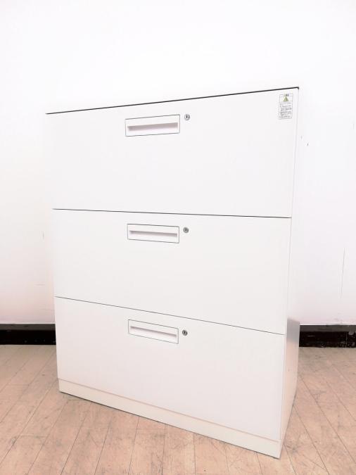 【2020年製】【収納力抜群の3段ラテラル書庫!A4書類が大量に収納可能!】■コクヨ(KOKUYO)製 エディア(EDIA)シリーズ 3段ラテラル ローキャビネット H1130㎜ ■天板・ベース付き ■ホワイト ■シリンダー錠【2511】弊社使用欄【A01044970】