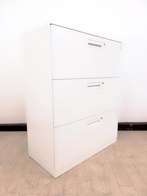 【4台入荷】【収納力抜群の3段ラテラル書庫!A4書類が大量に収納可能!】■コクヨ(KOKUYO)製 エディア(EDIA)シリーズ 3段ラテラル ローキャビネット ■天板/ベース付き ■ホワイト ■シリンダー錠