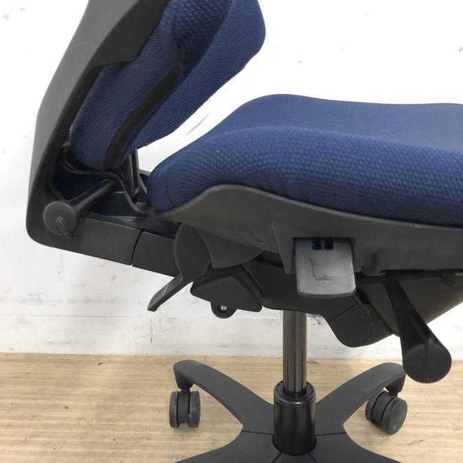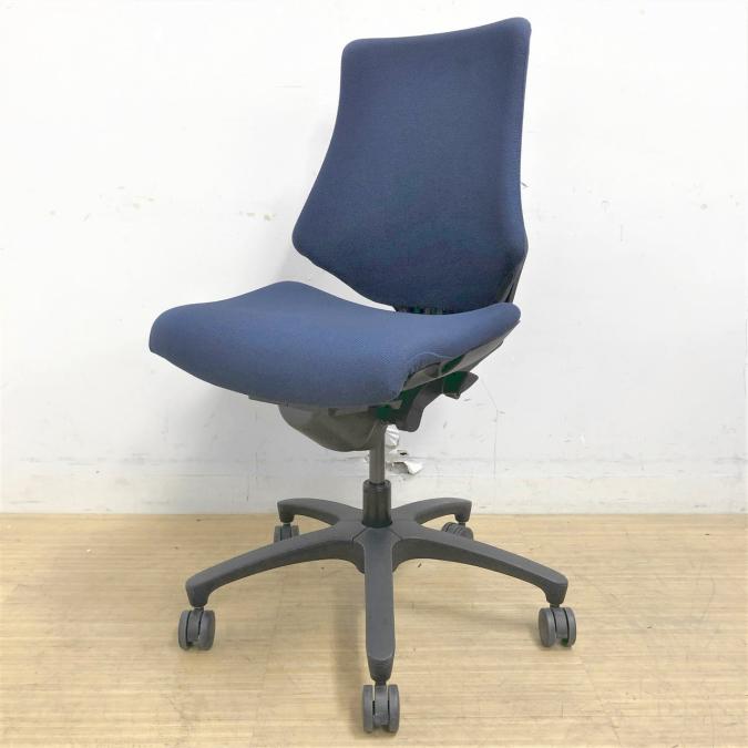 イトーキ エフチェア 肘無しモデル ローバック仕様 クロスタイプ ネイビーブルー×ブラックフレーム- 名古屋千種店