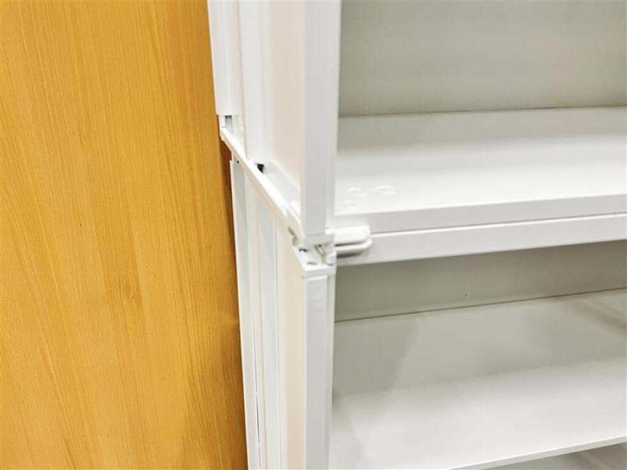 人気のホワイト色、観音開き扉タイプの書庫です。